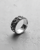 Discover a masterpiece of wearable art with our handcrafted textured silver ring. Inspired by the raw beauty of natural formations, this wide band features an intricate, organic surface reminiscent of cooled lava or delicate coral structures. Each abstract form and detailed crevice is meticulously sculpted by our master artisans from premium 925 sterling silver, creating a piece that is both rugged and refined. The highly polished interior ensures a comfortable fit, contrasting beautifully with the complex exterior. This unique textured silver ring serves as a bold statement, perfect for those who appreciate avant-garde design and superior craftsmanship. Whether worn as a modern wedding band or a standout daily accessory, this ring captures a unique, elemental elegance. Elevate your collection with a design that is truly one-of-a-kind and speaks to a sophisticated, artistic style.