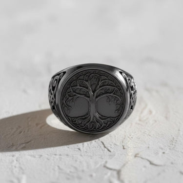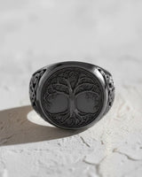 Connect with the heart of Norse mythology through our masterfully crafted Silver Yggdrasil Ring. This exceptional piece features a deeply detailed depiction of the World Tree, with its intricate roots and sprawling branches symbolizing the interconnectedness of all life. The band is adorned with elaborate Norse knotwork, enhanced by a dark oxidized finish that brings every detail to life. Forged from solid 925 sterling silver, this ring offers both profound meaning and enduring quality. Each element is handcrafted by skilled artisans, making it a powerful talisman for followers of Viking lore. Perfect as a statement piece for daily wear or as a meaningful gift, this Silver Yggdrasil Ring is a wearable piece of ancient legend, blending timeless symbolism with rugged elegance.