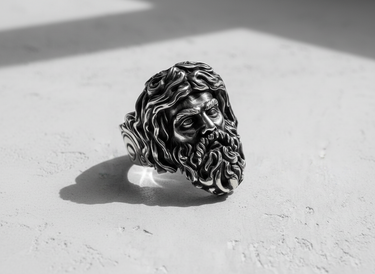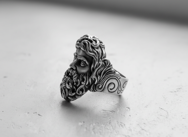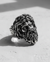 Channel the formidable power of the king of Olympus with our masterfully crafted Silver Zeus Ring. This commanding piece features a highly detailed, three-dimensional sculpture of the Greek god's face, capturing his majestic beard, flowing hair, and authoritative gaze. Each ring is meticulously handcrafted from premium 925 sterling silver, ensuring both exceptional durability and a comfortable fit for daily wear. The expert oxidized finish enhances the intricate textures and shadows, bringing the divine portrait to life with stunning depth and character. As a bold statement of strength and authority, this Silver Zeus Ring is the ultimate accessory for mythology enthusiasts and anyone drawn to powerful, historical designs. Elevate your style with a symbol of celestial sovereignty, a wearable work of art that embodies timeless legend and superior craftsmanship.