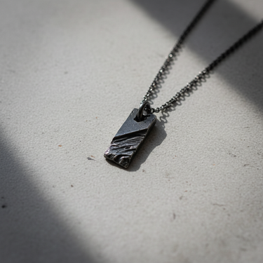 Discover the rugged elegance of this handcrafted silver rustic bar pendant, a piece that embodies raw strength and modern minimalism. The rectangular design features a deeply textured surface, reminiscent of weathered rock or ancient bark, created through meticulous hammering and carving techniques. Expertly cast in premium 925 sterling silver, the pendant is finished with a dark oxidation that accentuates the intricate grooves and distressed details, giving it a unique industrial edge. This versatile accessory pairs effortlessly with casual or formal attire, making it an essential addition to any men's jewelry collection. Whether you are looking for a distinctive personalized gift for him or a meaningful self-purchase, this durable sterling silver necklace offers timeless style and exceptional craftsmanship that speaks to an adventurous spirit.