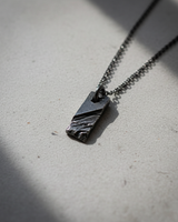 Discover the rugged allure of this handcrafted Silver Rustic Bar Pendant, designed for the modern man who values raw aesthetics and refined craftsmanship. Expertly forged from premium 925 sterling silver and finished with sleek black rhodium plating, this necklace features a distinctive chiseled texture that mimics the unyielding surface of natural stone. The geometric rectangular design offers a bold industrial look, making it a standout accessory for casual or edgy ensembles. Each pendant is unique, with deep grooves and oxidized details that add exceptional depth and character to the piece. Ideally suited as a personalized gift for him or a sophisticated addition to a daily rotation, this Silver Rustic Bar Pendant embodies strength and individuality. The durable construction ensures lasting wear, making this textured silver necklace a timeless statement of masculine style.