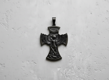 Invoke divine protection and strength with this exquisite Silver St. Michael Pendant, a masterpiece of religious artistry. This detailed piece vividly captures the powerful Archangel Michael in triumph, his wings spread wide as he defeats the dragon, symbolizing the ultimate victory of good over evil. The design features a distinctive cruciform shape with a banner reading "ST. MICHAEL" positioned above the intricate relief, adding a touch of classic reverence. Expertly handcrafted from premium 925 sterling silver, this pendant ensures substantial weight and durability, creating a lasting heirloom for generations. Whether chosen in the radiant rose gold plated finish or the classic oxidized silver look, this religious jewelry piece showcases exceptional depth and texture through skilled craftsmanship. Perfect for those seeking spiritual reassurance or a unique gift for a loved one, this St. Michael pendant serves as a daily guardian and a bold fashion statement. Elevate your personal style with this timeless symbol of faith that seamlessly blends sacred imagery with superior artisan quality.