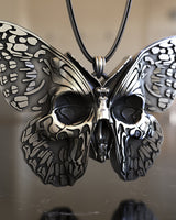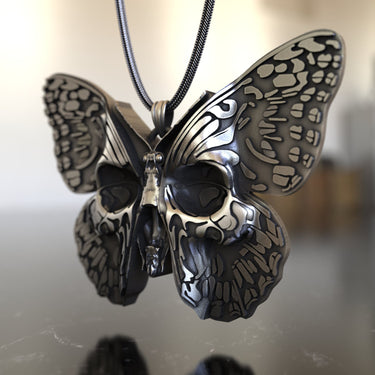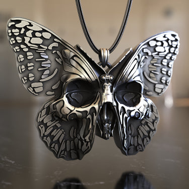 Transform darkness into beauty with this mesmerizing 925 sterling silver butterfly skull pendant that perfectly blends gothic elegance with natural symbolism. This extraordinary piece features intricately detailed butterfly wings adorned with skull motifs, creating a powerful representation of life's eternal cycle. Masterfully crafted from premium sterling silver, each pendant showcases exceptional attention to detail with oxidized accents that highlight the dramatic contrast between delicate butterfly patterns and haunting skull imagery. The substantial weight and mirror finish demonstrate superior craftsmanship and lasting durability. Perfect for gothic style enthusiasts and those drawn to symbolic jewelry, this butterfly skull pendant makes a bold statement piece for both casual and formal occasions, expressing individuality and artistic appreciation through its unique design.