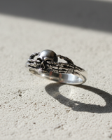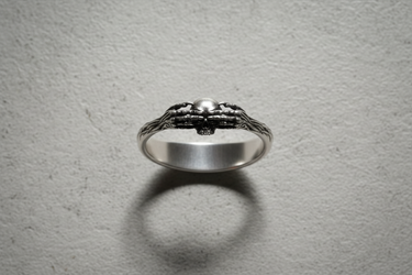 Process: Silver is treated with oxidation to create natural darkening in recessed areas, emphasizing the handcrafted details and giving each piece a vintage, mystical appearance.