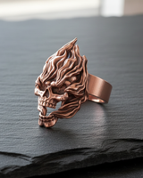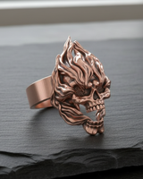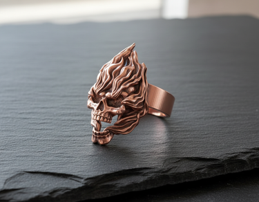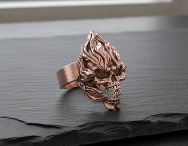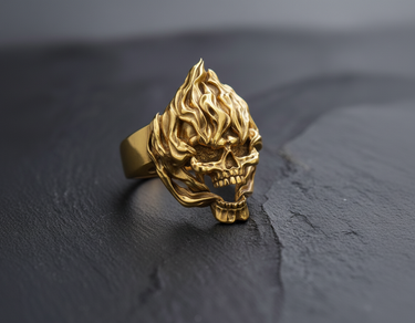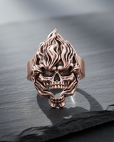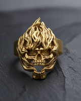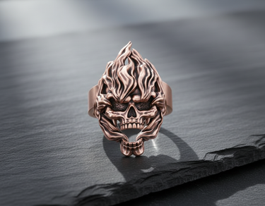 Ignite your style with this intense silver flaming skull ring, a masterpiece of gothic design that commands attention. The ring features a menacing skull consumed by roaring flames, where the fire forms the structure of the piece, meticulously sculpted to capture every flicker and bone detail. Crafted from premium 925 sterling silver, this ring boasts an expert oxidized finish that highlights the deep contrasts between the polished flames and the dark, hollow eyes. Perfect for bikers, rockers, and enthusiasts of dark aesthetics, this piece serves as a powerful symbol of rebellion and unyielding strength. The durable construction and smooth inner band ensure comfort for daily wear while making a bold statement. Whether chosen as a unique gift for him or to elevate your own collection, this handcrafted flaming skull ring embodies fearless individuality and timeless craftsmanship.
