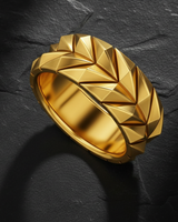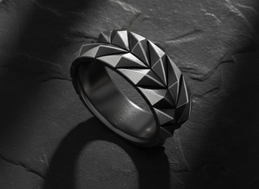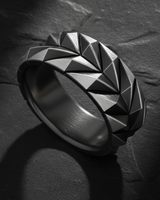 Forge a bold path with this distinct Silver Geometric Armor Ring, a testament to modern industrial aesthetics and strength. The design features a continuous array of raised, diamond-shaped peaks resembling impenetrable armor or rugged tire treads, creating a dynamic visual texture that commands attention. Meticulously handcrafted from premium 925 sterling silver, the ring boasts a sophisticated matte finish with oxidized recesses that highlight the sharp geometric precision and depth. This heavy-duty silver ring offers a substantial feel and comfortable fit, making it an ideal choice for a unique men's wedding band or a standalone statement piece. Perfect for the modern man who values durability and edge, this architectural jewelry piece combines brutalist style with timeless elegance. Whether as a gift for him or a personal upgrade, this 925 sterling silver ring is built to last a lifetime.