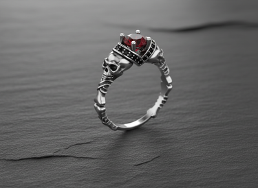 Declare an eternal bond with this exquisite Silver Skull Engagement Ring, a masterpiece of gothic romance and alternative style. Handcrafted from premium 925 sterling silver, this ring features a striking red gemstone centerpiece held by claws, accented with small black crystals and flanked by two realistic skulls. The band is intricately sculpted to resemble skeletal vertebrae, offering a macabre yet elegant aesthetic that stands out. Whether chosen in the classic silver finish or the romantic rose gold plating, this silver skull engagement ring creates a bold statement for those who dare to be different. The meticulous attention to detail and solid 925 sterling silver construction ensure lasting quality and comfort for daily wear. Perfect for unique proposals or as a signature accessory, this ring embodies a love that transcends the ordinary.