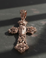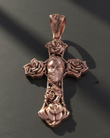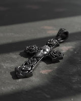 Silver Skull Rose Cross Pendant