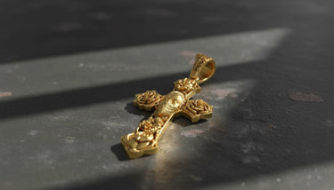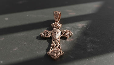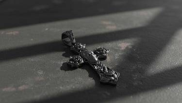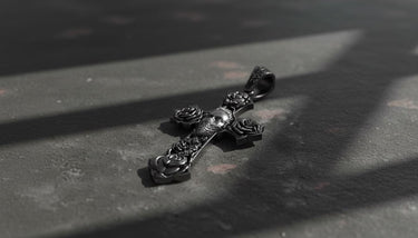 Embrace bold spirituality with this striking Chicano cross pendant featuring intricate skull and rose motifs. This handcrafted 925 sterling silver pendant showcases authentic tattoo-style artistry with detailed gothic elements that capture the essence of Chicano culture. Each rose is meticulously carved at the cross ends, while the central skull design adds powerful symbolism to this religious pendant. The oxidized finish enhances every intricate detail, creating depth and character that makes this cross pendant a true statement piece. Perfect for those who appreciate gothic jewelry with spiritual meaning, this sterling silver pendant combines traditional craftsmanship with contemporary street style. Whether worn as a symbol of faith or artistic expression, this handmade cross pendant delivers exceptional quality and distinctive design that stands out in any jewelry collection.