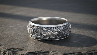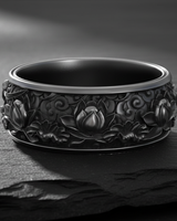 Discover serenity and elegance with this handcrafted silver lotus flower ring, a masterpiece of botanical artistry. Inspired by traditional Japanese aesthetics, the wide band features deeply carved blooming lotuses floating amidst swirling clouds, symbolizing purity, rebirth, and spiritual awakening. Meticulously cast from premium 925 sterling silver, the ring boasts an oxidized background that creates a striking contrast against the raised, polished relief details, adding exceptional depth and dimension to the intricate design. A smooth, brushed section offers a modern visual break, highlighting the artisan craftsmanship. Ideal as a distinctive wedding band or a bold statement piece for any finger, this durable accessory ensures a comfortable fit for everyday wear. Whether you seek a meaningful gift or a personal talisman, this silver lotus flower ring elevates any style with its blend of ancient symbolism and contemporary luxury.
