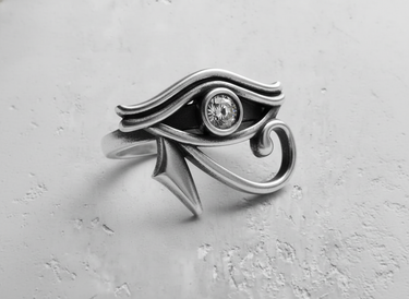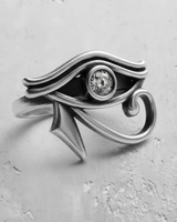 Channel ancient power and protection with our masterfully crafted Silver Eye of Horus Ring, a timeless symbol of wisdom and well-being. This exquisite piece is forged from premium 925 sterling silver, featuring the iconic stylized eye with elegant, flowing lines and a delicate scroll detail. At its heart, a brilliant-cut gemstone sparkles, representing the pupil and drawing in light with every movement. The high-polish finish accentuates the ring's graceful curves, offering a modern take on a legendary talisman. Perfect for enthusiasts of mythology or anyone seeking a unique and meaningful accessory, this Silver Eye of Horus Ring blends historical significance with contemporary elegance. Wear it daily as a statement of strength and divine guardianship, a beautiful connection to the rich heritage of ancient Egypt.