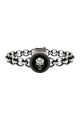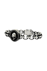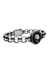 Make a sophisticated statement with this elegant skull medallion bracelet crafted in premium 925 sterling silver. The commanding centerpiece features a meticulously detailed skull within an ornate rope-bordered medallion, creating the perfect balance of rebellion and refinement. The substantial 30-gram weight for the 6-inch length ensures lasting quality, while the classic chain links provide comfortable everyday wear. Available in custom lengths from 6 to 10 inches to achieve the perfect fit. This piece seamlessly blends Gothic elegance with modern sophistication, making it ideal for those who appreciate darker aesthetics with style. Perfect for both casual rebellion and formal occasions.
