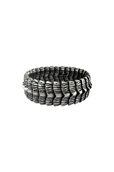 Process: Silver is treated with oxidation to create natural darkening in recessed areas, emphasizing the handcrafted details and giving each piece a vintage, mystical appearance.