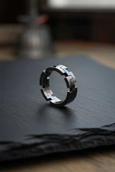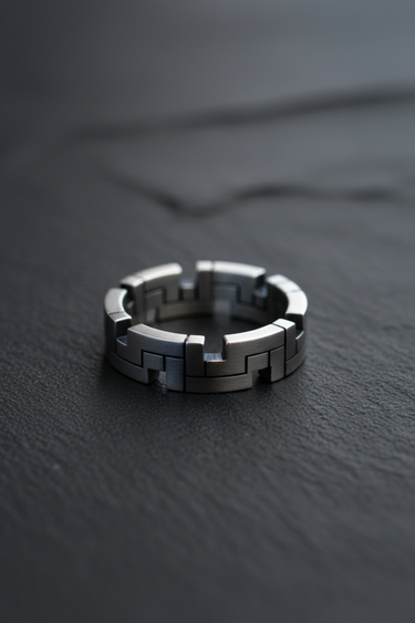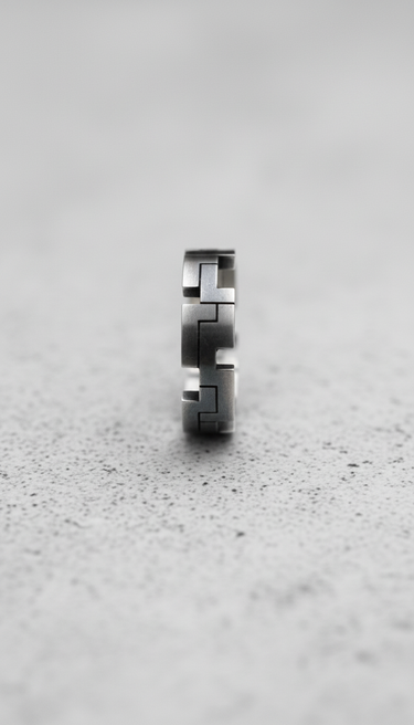 Enter the digital age with this striking geometric ring crafted in premium 925 sterling silver. The design features bold cross-shaped blocks arranged in a three-dimensional pixel pattern that wraps completely around the band, creating a mesmerizing architectural rhythm. Each angular element is precisely engineered with sharp edges and clean lines, merging modern minimalism with gaming culture aesthetics. The oxidized finish adds depth to the recessed areas while polished surfaces catch light from every angle, emphasizing the dimensional relief pattern. This contemporary piece bridges the gap between traditional craftsmanship and digital-age design. Perfect for gamers, tech enthusiasts, architects, and anyone who appreciates cutting-edge modern jewelry. Whether you're a Minecraft fan or simply drawn to bold geometric statements, this ring delivers everyday wearability with undeniable style.