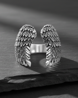 Soar to new stylistic heights with this exquisite silver angel wing ring, a tangible symbol of freedom, protection, and divine guidance. Expertly handcrafted from solid 925 sterling silver, this unique piece features two intricately detailed wings that curve gracefully to embrace your finger in an open, adjustable design ensuring a perfect fit. The master artisans have textured every individual feather, creating a realistic depth that is enhanced by a subtle oxidized finish to highlight the craftsmanship. This silver angel wing ring serves as a powerful statement piece, blending gothic romanticism with modern luxury. Whether chosen in classic silver or the opulent 14K gold vermeil option, its durable construction and comfortable profile make it a lasting addition to any jewelry collection. Embrace the feeling of flight and showcase your unique personality with this breathtaking example of fine silver craftsmanship, perfect as a spiritual gift or personal talisman.