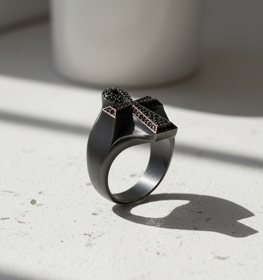 Process: Coated with premium black rhodium for an intense, dark finish.
