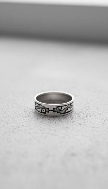 Discover ancient Mesoamerican artistry with this stunning 925 sterling silver Aztec ring. Featuring authentic Mayan geometric patterns that wrap around the band, each intricate detail tells the story of a powerful civilization. The oxidized finish accentuates every carved line and symbol, creating depth and character that honors traditional craftsmanship. This silver Aztec ring is meticulously handcrafted from premium sterling silver, ensuring durability and comfort for daily wear. Perfect for history enthusiasts, cultural jewelry collectors, and those seeking meaningful accessories with ancient symbolism. Whether worn as a statement piece or meaningful gift, this Aztec ring connects you to timeless heritage while adding sophisticated style to any look.