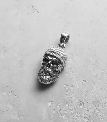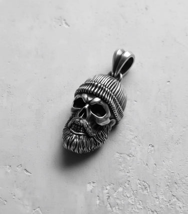 Unleash your inner rebel with this masterfully crafted bearded skull pendant, a bold statement of individuality and biker-inspired edge. Every detail, from the intricately textured beard to the ribbed knit of the beanie, is expertly carved by skilled artisans to create a piece that is both rugged and refined. Forged from solid 925 sterling silver, this pendant offers a substantial feel and lasting durability, ensuring it becomes a timeless part of your collection. Its design channels a powerful Memento Mori spirit, reminding the wearer to live life to the fullest. Perfect for bikers, rock enthusiasts, or anyone seeking standout unisex jewelry, this exceptional bearded skull pendant is more than an accessory—it's a symbol of untamed freedom and meticulous craftsmanship that elevates any look with its striking presence.