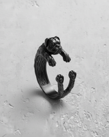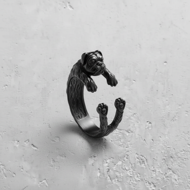 Capture the loyal spirit of man's best friend with this adorable Silver Bulldog Ring. Expertly handcrafted from premium 925 sterling silver, this charming piece features a lifelike bulldog that appears to hug your finger with its detailed paws. The open, adjustable design ensures a comfortable fit for any size, while the meticulous engraving showcases the dog's characteristic wrinkles and textured fur. The oxidized finish adds depth to the realistic features, highlighting the craftsmanship involved in creating this unique animal accessory. Perfect for pet owners and dog lovers alike, this silver bulldog ring serves as a heartwarming symbol of companionship and devotion. Whether worn as a daily statement or kept as a special keepsake, this handcrafted ring brings a playful yet elegant touch to any jewelry collection.